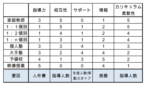 当時の僕が行っていたのは1:2の個別指導と少人数の集団授業(表でいくと個人塾に該当します)でした。